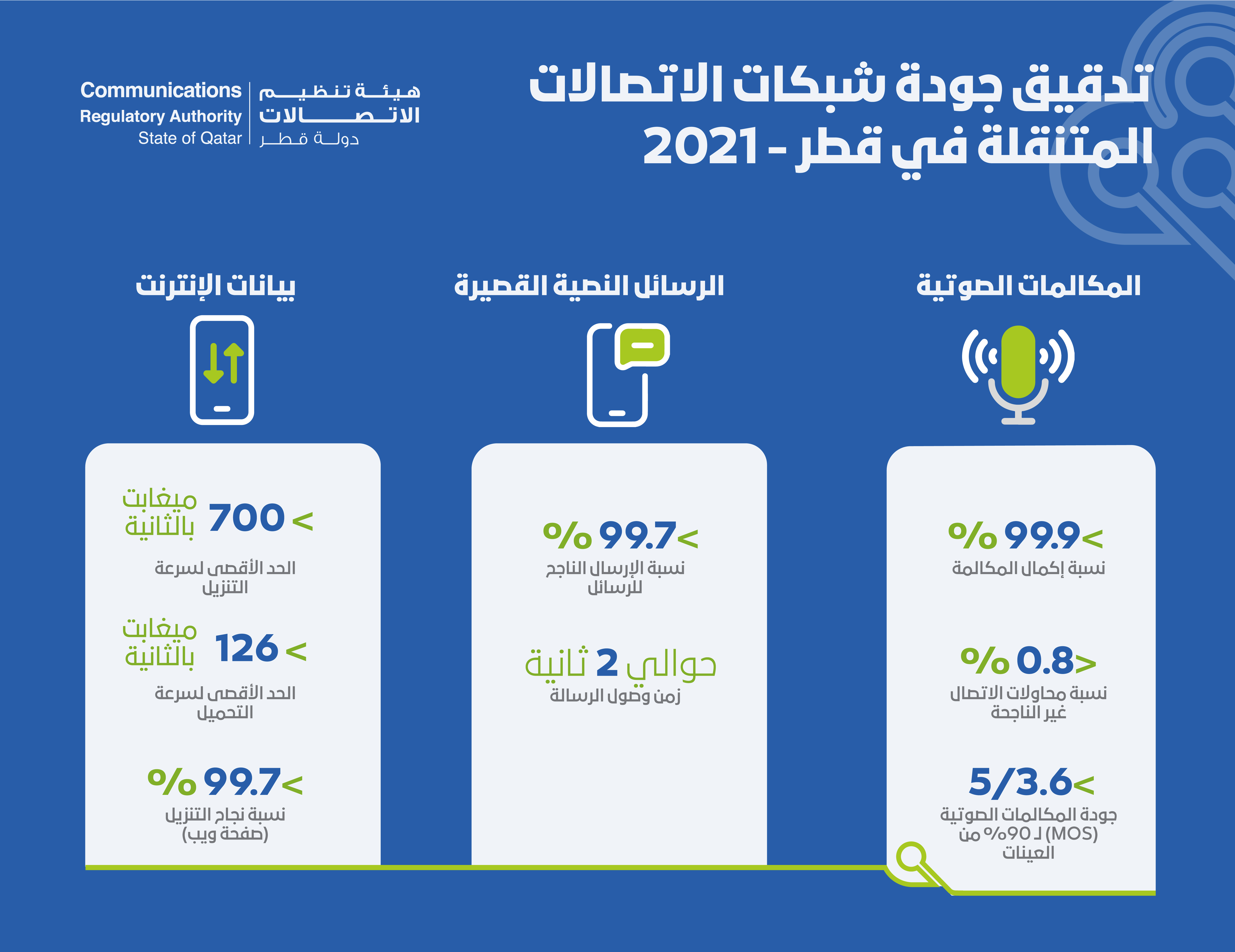 هيئة تنظيم الاتصالات تنشر نتائج تدقيق جودة شبكات الاتصالات المتنقلة للعام 2021
